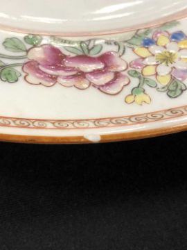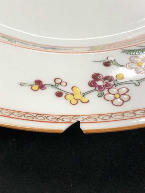 24cm dia: two with very small rim chips; one with a deep rim chip; remainder with only negligible signs of age.