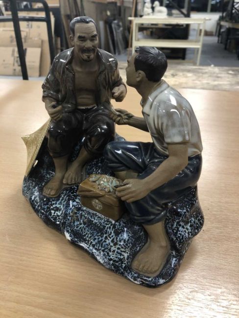 Two Chinese stoneware figures of farmers, Republic/People's Republic