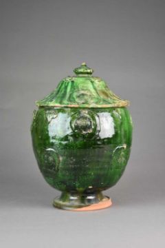A Chinese green-glazed storage jar and cover, Ming Dynasty