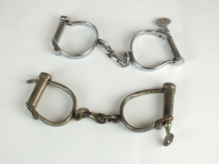 Two pairs of "D-Type" Handcuffs including an early pair by Hiatt, late 19th/early 20th century, stamped "Hiatt's Best Warranted Wrought' and numbered '1', with key, together with a further pair by W. Dowley & Son, stamped 'DOWLER WARRANTED' and numbered '4', again with key, probably circa 1920s (2)