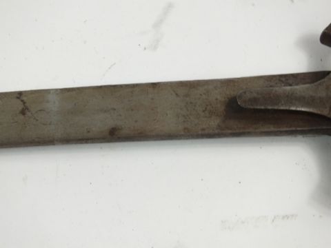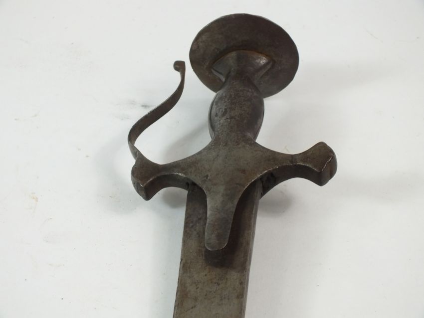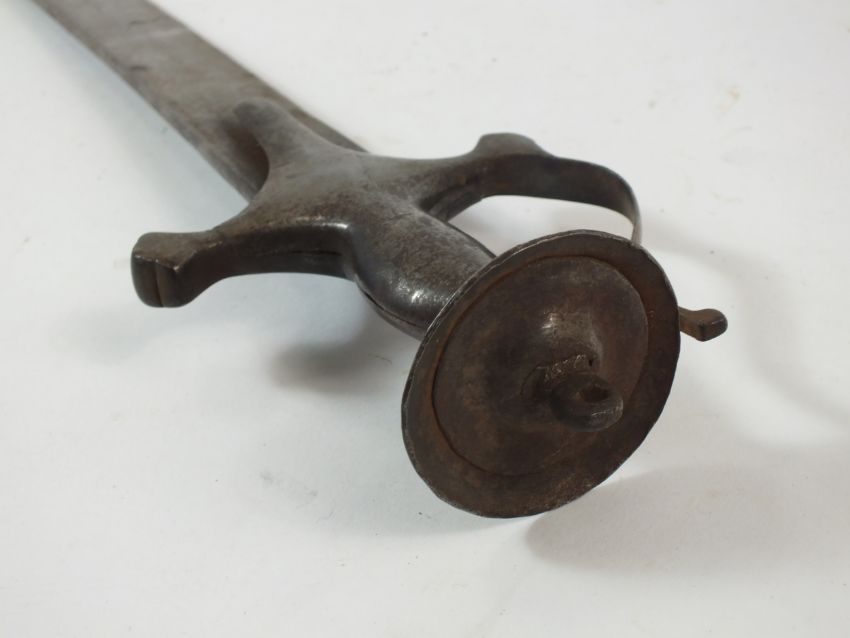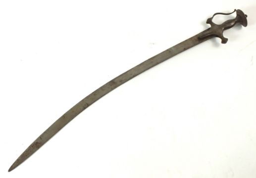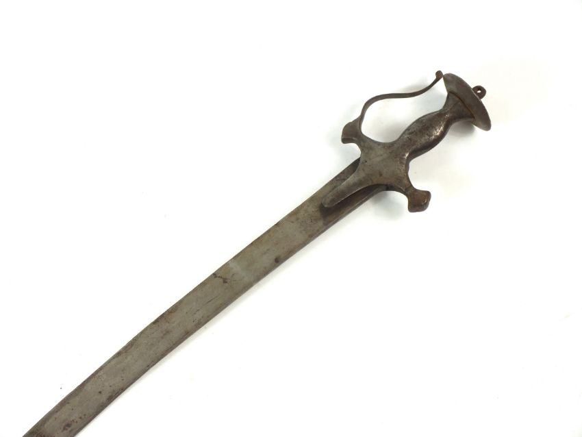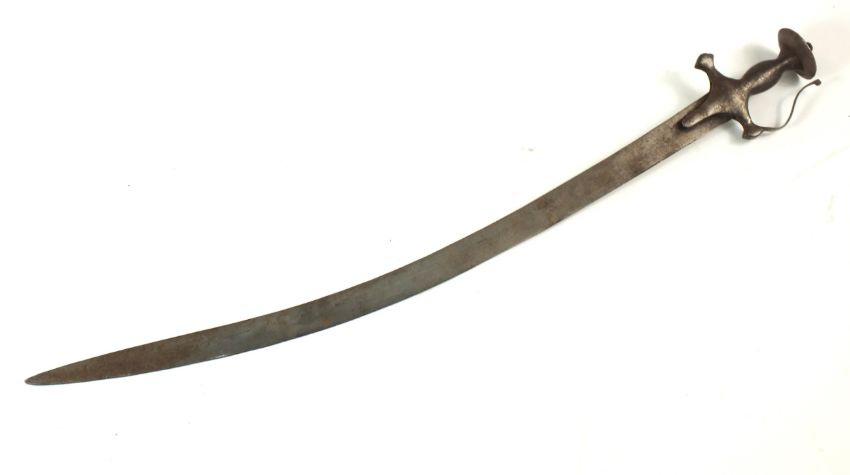 An Indian tulwar sword 19th century with a characteristic steel hilt, scroll knuckle guard and dished disc pommel, blade length 79cm, overall length 89cm