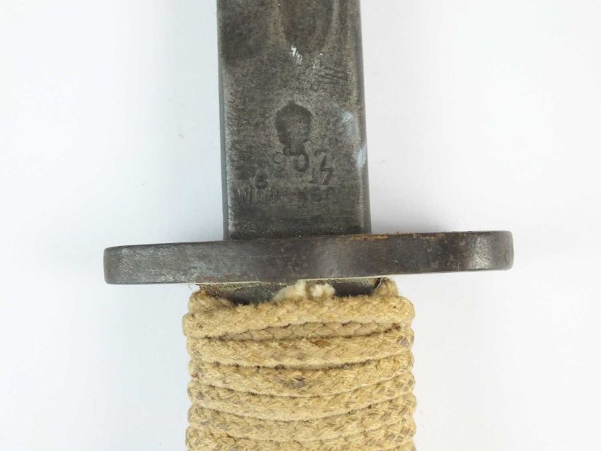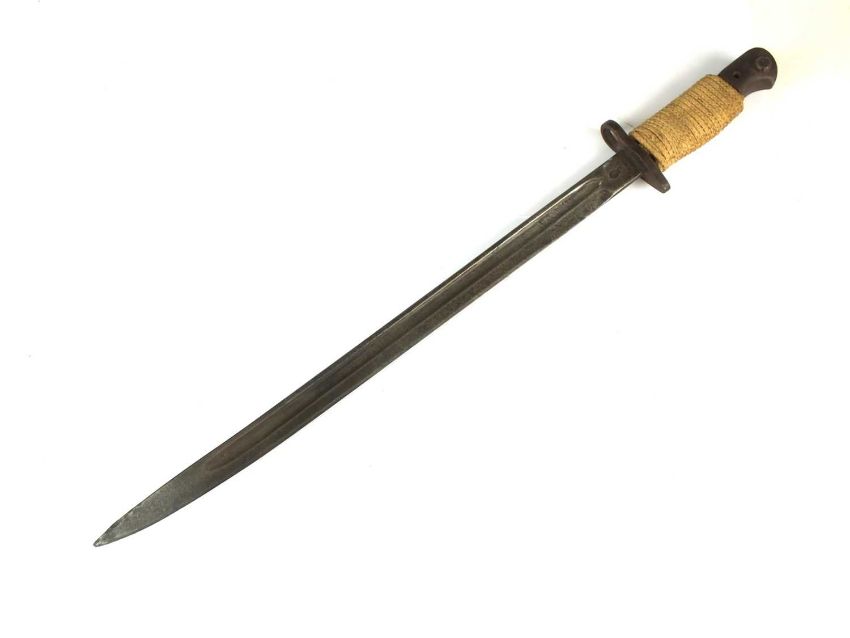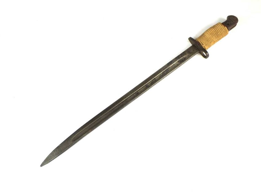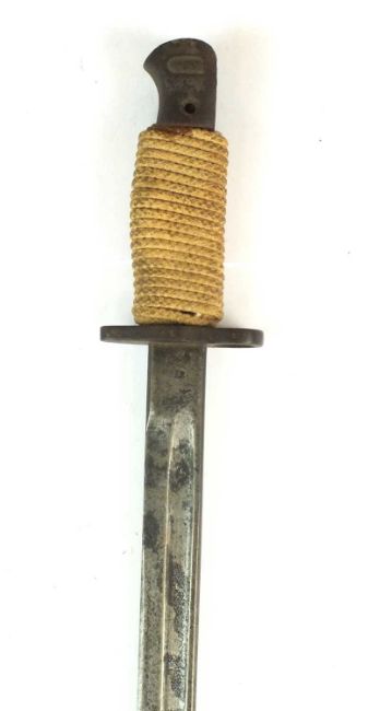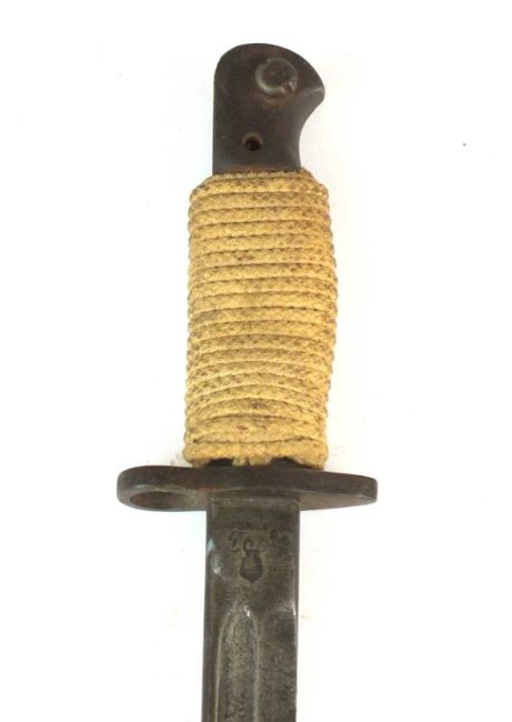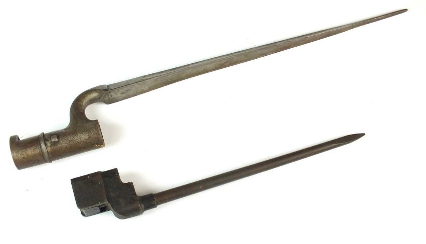 A British 1907 Pattern bayonet by Wilkinson, with a replaced grip wrapped with cord, dated 1917 to the ricasso, blade length 43cm, overall length 55cm; together with a British Brown-Bess socket-type bayonet by F. Preston Manchester, overall length 39cm together with a No. 4 MKII bayonet, stamped 'L.ENG' for Lewisham Engineering, overall length 25cm