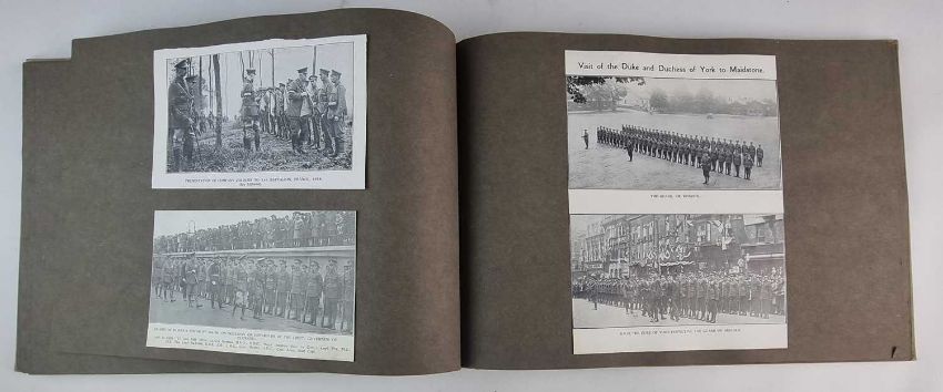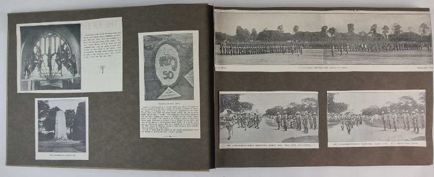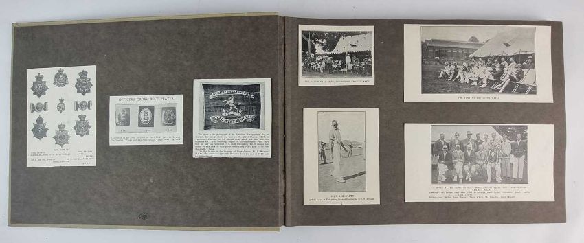 Including military insignia, officers and men of the regiment, regimental sporting teams including running, boxing, hockey, cricket, shooting, football and rugby, 58 pages and approximately 116 different cuttings. (album 14.5 x 10.5 inches)