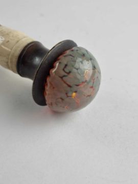 An unusual late 19th-century sword or dagger cane, the bamboo shaft with glass pommel, bone collar inset with red glass gem and a horn ferrule, the handle pulling out to reveal a 34.5cm long blade, overall length 90cm