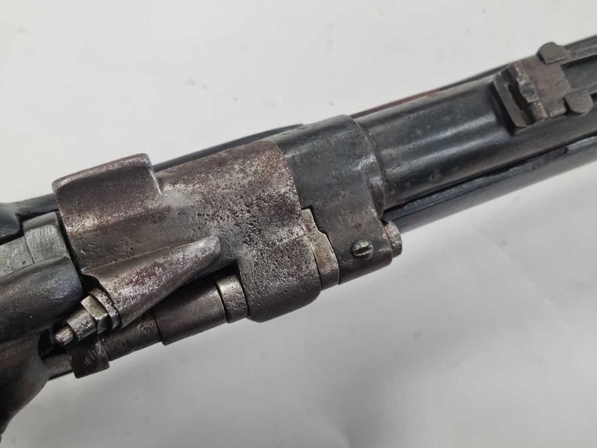 Stock badly cracked, pitting and corrosion to barrel, dings and dents. Action appears to work but condition generally a.f. Sold with all faults.