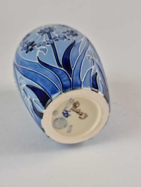 A small Moorcroft blue on blue 'Leila' vase, dated 2003, painted and impressed marks, 10.5cm high. Unboxed.