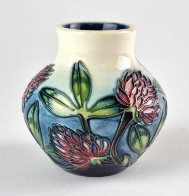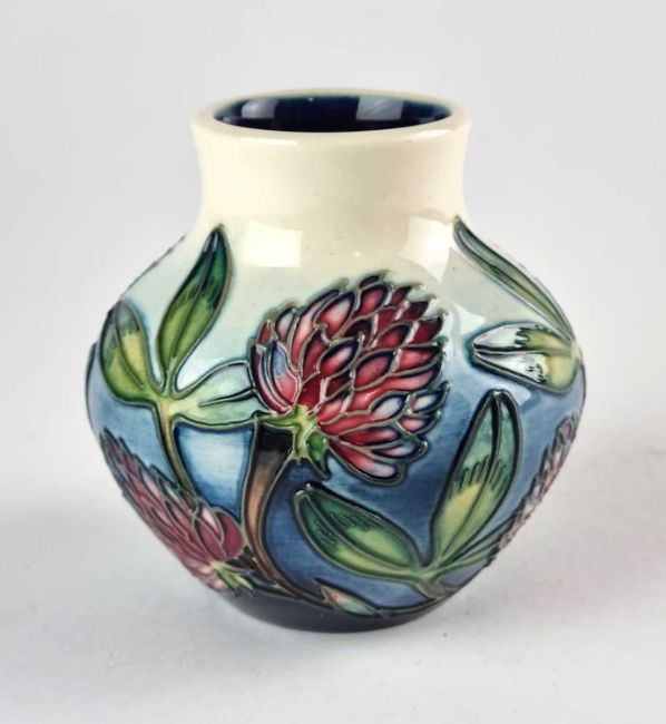A small Moorcroft Trial vase designed by Emma Bossons, dated 1999, printed and painted marks including Bossons' signature, 8.5cm high. Unboxed.