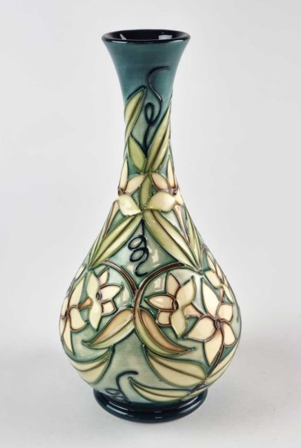 A Moorcroft 'Carousel Jasmine' vase designed by Rachel Bishop, dated 1997 and numbered 148, painted and impressed marks including Emma Bossons' monogram, 23.5cm high. Boxed.