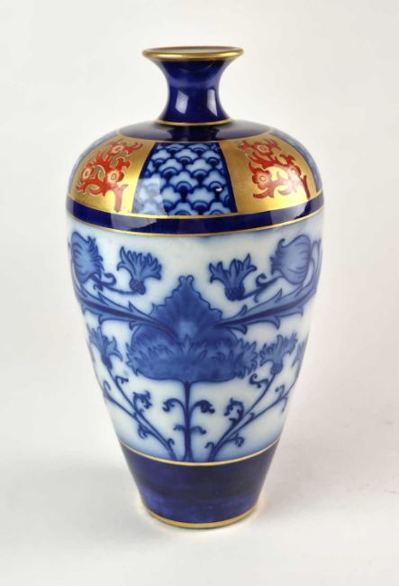 A William Moorcroft for Macintyre & Co 'Aurelian' vase, c1904-1913, of high shouldered-form with transfer-printed Art Nouveau style flowers, highlighted in gilt, printed factory mark, painted 'M560' in iron red, 21cm high