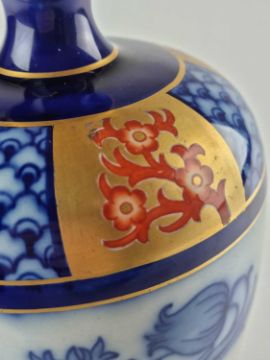 Tiny nick to foot rim. Otherwise, good condition with no further damages or repairs. A few small scratches/areas of wear to the gilding, including one 'ding' mark to a panel.