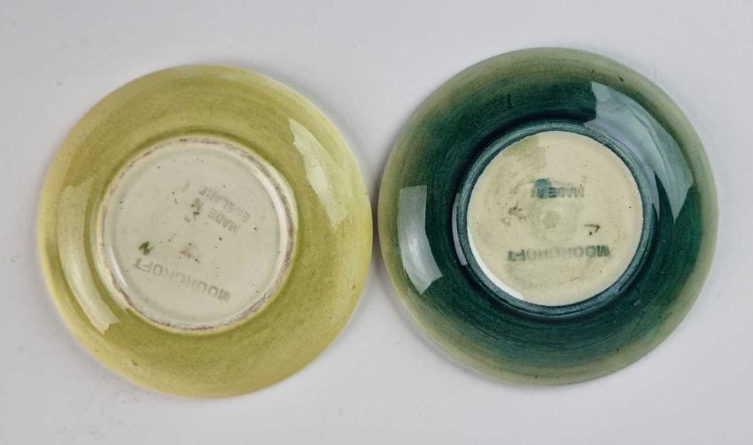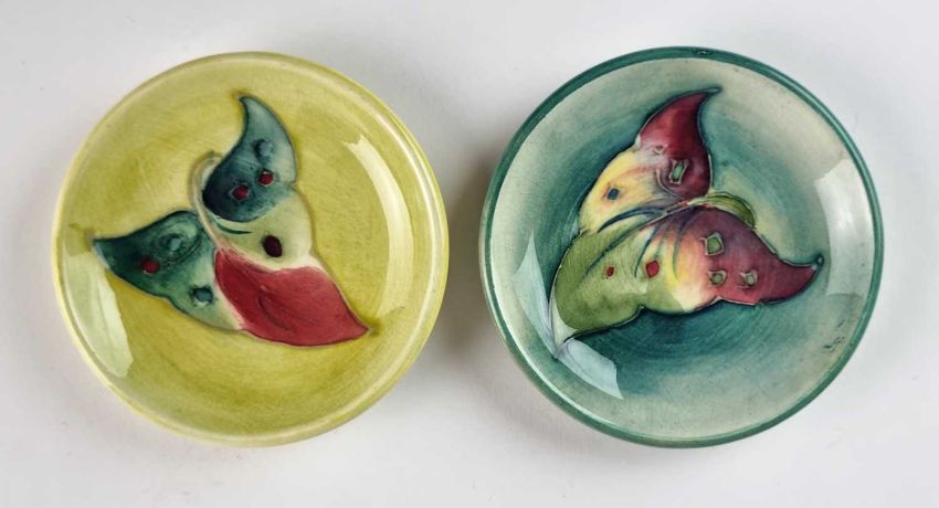 Two miniature Moorcroft 'Arum Lily' pin dishes, mid-20th century, in pale and darker green colourways, impressed marks, 8cm diameter (2)