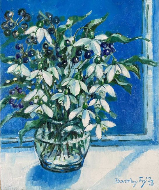 Beverley Fry (b.1948) Winter Snowdrops, signed and dated '23 lower right, oil on canvas, 30 x 25 cm