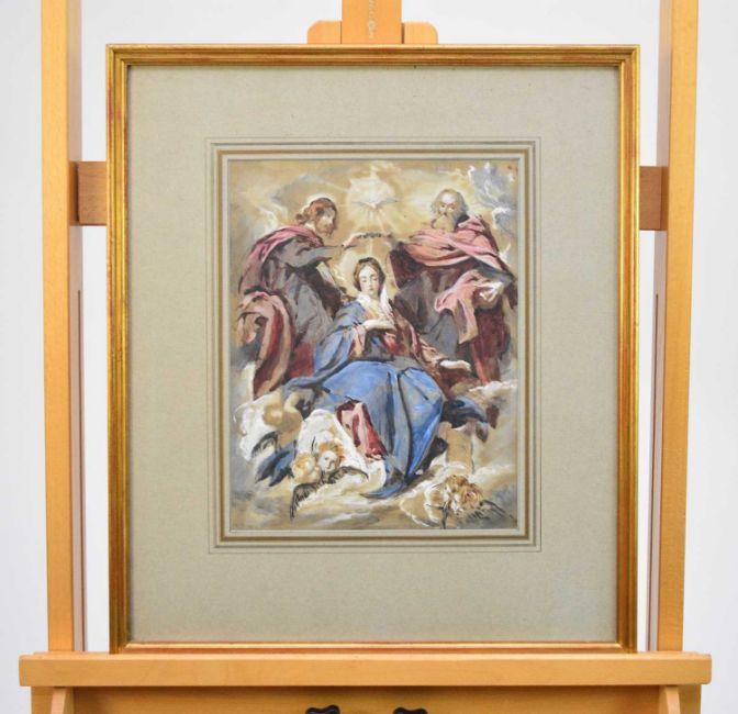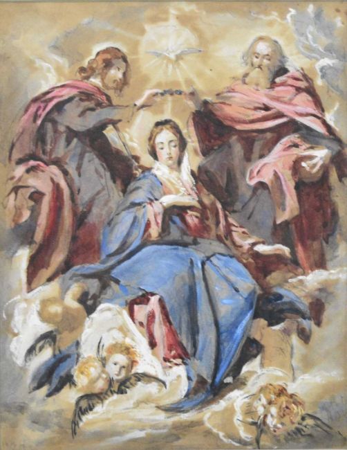 Hercules Brabazon Brabazon (1821-1906) Coronation of the Virgin after Velasques, watercolour, 30 x 23.5 cm, frame 50 x 43 cm