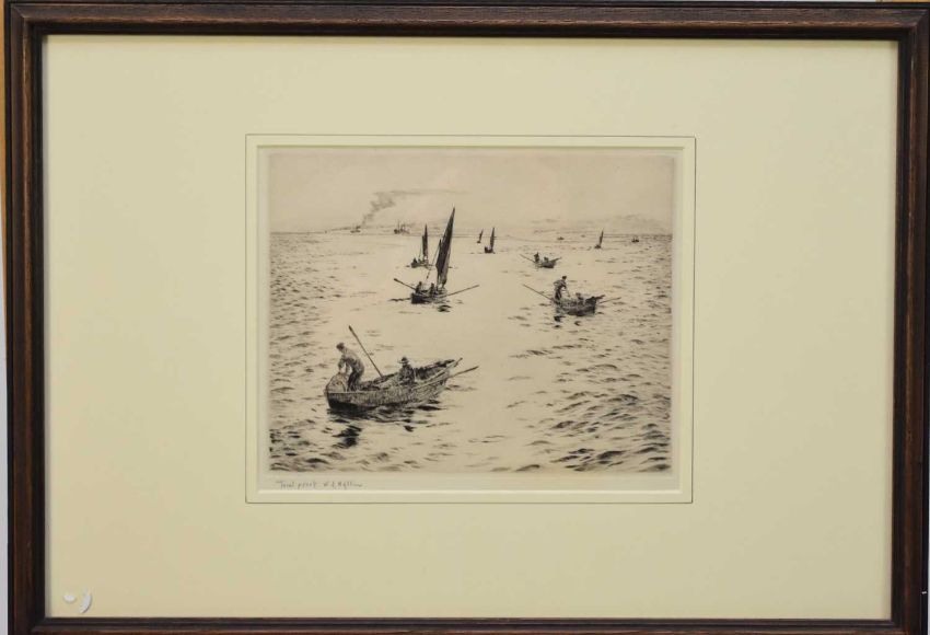 William Lionel Wyllie RA RWS (1851-1931) Portsmouth Fishing Boats, trial proof, etching, 18.5 x 23 cm (PL), 37.5 x 53 cm