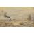 The painting is a watercolour, framed under glazing- not examined external to the frame. The visible sheet appears in generally good condition- no obvious losses, tears or faults. There is some general ageing (browning) to the sheet. The paint condition appears stable, some colour fade to the sky, otherwise appears fine. The frame has some general wear and tear, joints solid.