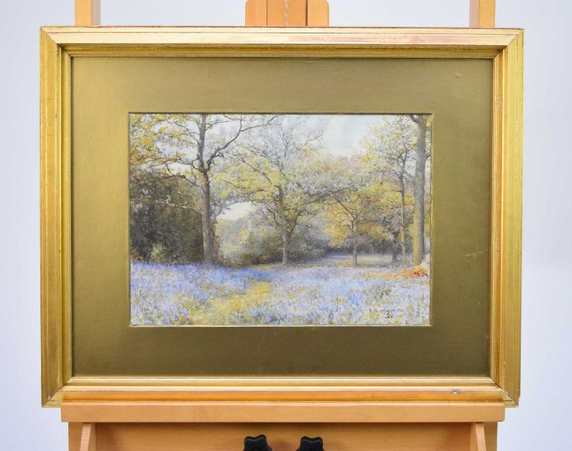 Earnest Albert Chadwick RBSA RI (1876-1955) Bluebell Wood, signed lower right, watercolour, 26.5 x 38 cm, frame 48 x 61 cm