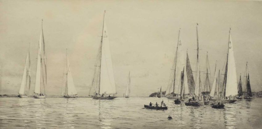 William Lionel Wyllie RA (1851-1931) Yachting at Cowes, Etching, signed