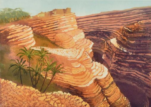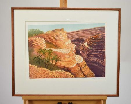 Margaret Sellars (20th-21st Century) Canyon, signed lower right, numbered 1/10, linocut, 35.5 x 50 cm, frame 59 x 70 cm