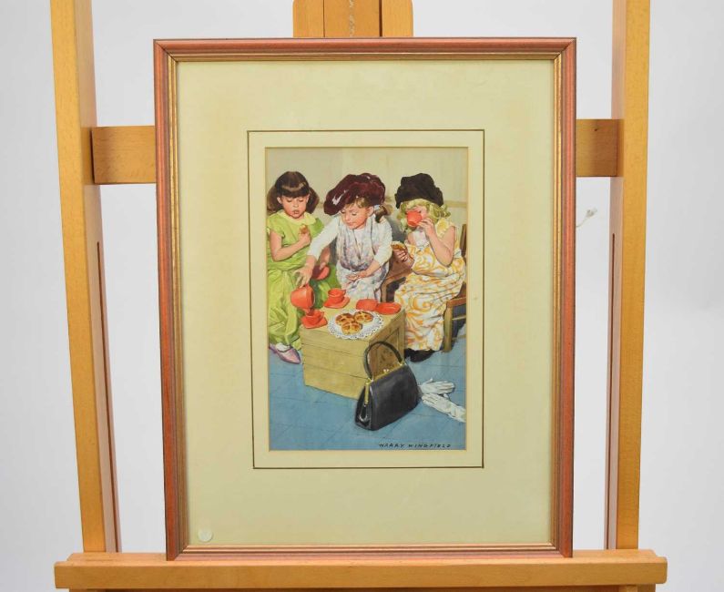 Harry Wingfield (1910-2002) Children's Teaparty, signed lower right, watercolour and gouache, 27.5 x 18 cm, frame 48 x 37.5 cm
