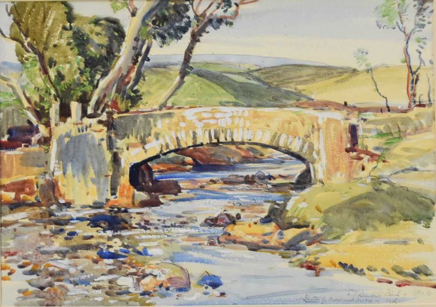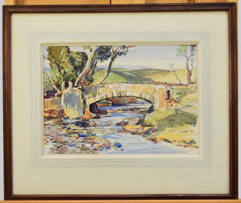 Samuel John Lamorna Birch RA RWS RWA (1867-1955) Moorland Bridge, signed lower right, watercolour, 25 x 35 cm, frame 45 x 53 cm