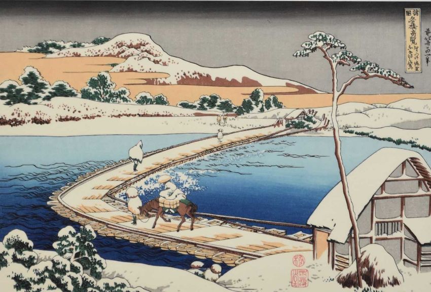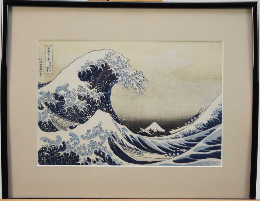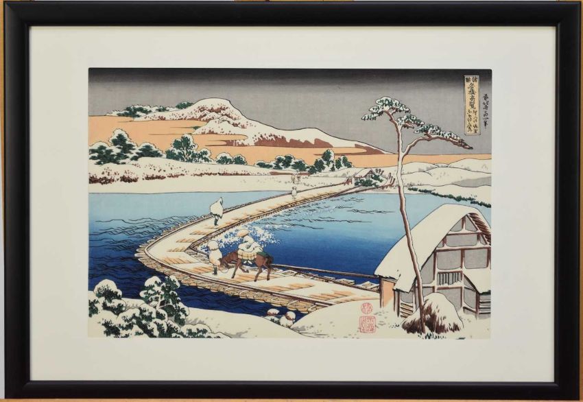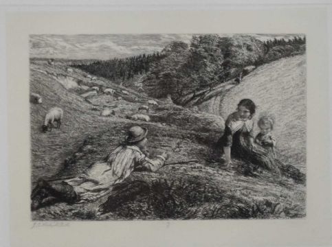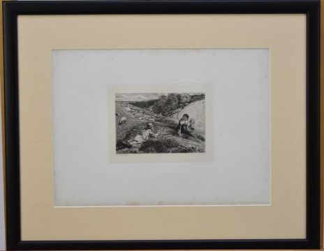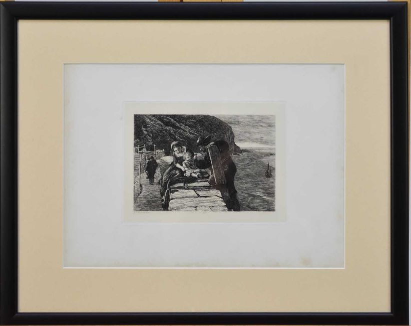 James Clarke Hook (1819-1907) The Fisherman's Goodnight, engraving, together with a another showing a shepherd and his family resting in a field (2), together with two prints after Hokusai - The Great Wave and The Boat Bridge at Sano (2)