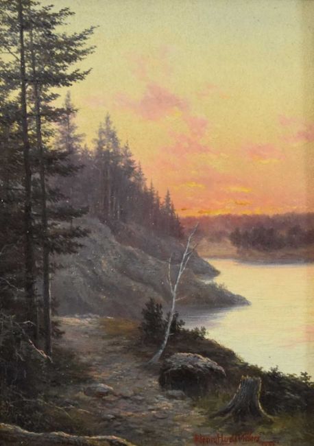 Henry Harold Vickers (1851-1918) Pair of Miniature River Landscapes, signed, dated 1892, oil on board, 14.5 x 10.5 cm, frame 18.5 x 14 cm