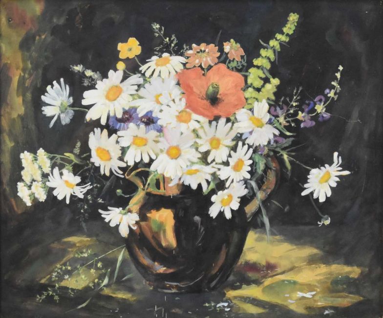 Anna Airy (1882-1964) Spring Flowers in a Vase, including Poppies and Daisies, signed lower right, watercolour, 41.5 x 50 cm, frame 52 x 60 cm