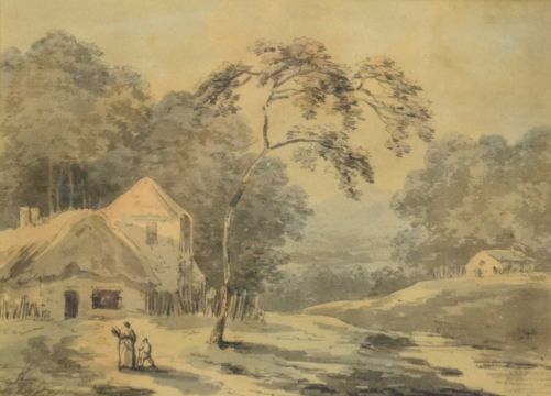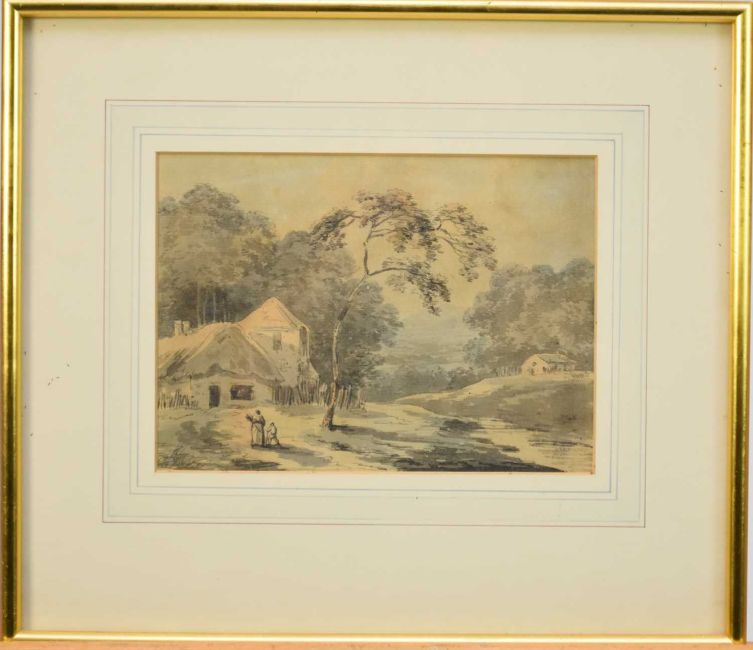 Attributed to Paul Sandby (1730-1809) A View in North Wales, watercolour, 15 x 20.5 cm, frame 31 x 35 cm. Handwritten label verso