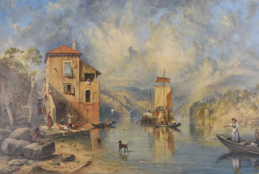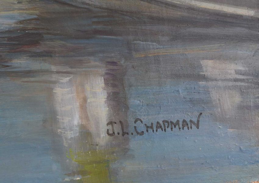 John L Chapman (b.1946) Tranquil Waters, Continental Lakeside Scene, signed lower right, oil on board, 51 x 76 cm