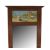 With a cornice above a glazed painted village scene, signed 'Rob Dutoit' lower right, and the rectangular mirror plate, the frame with stringing and floral marquetry medalions on either side of the mirror.