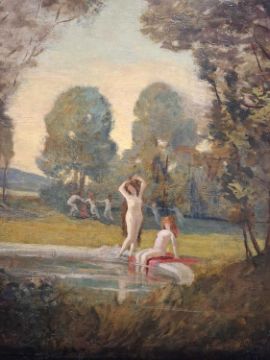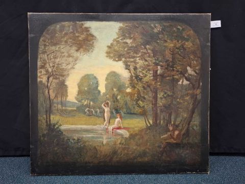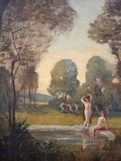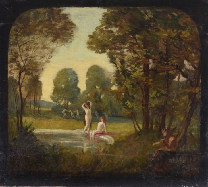 Attributed to Philip Wilson Steer (1860-1942) Pan Watching Nymphs at a Woodland Pool, bears signature P W Steer lower right, oil on canvas, 71 x 80 cm