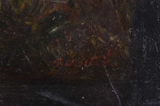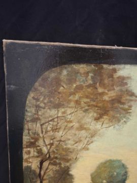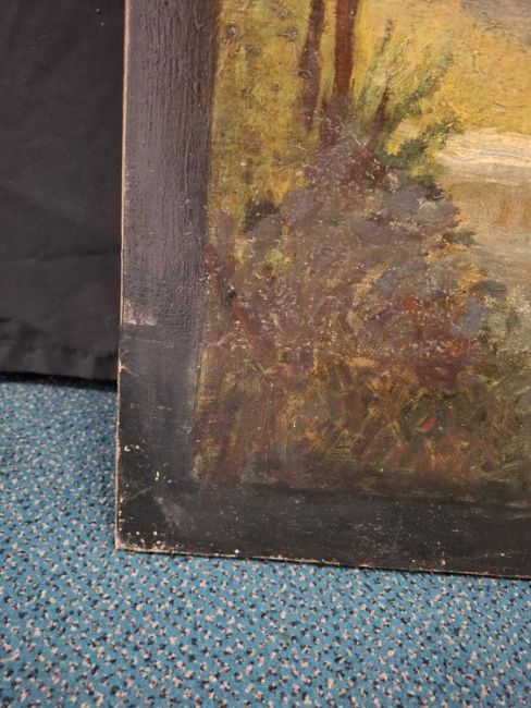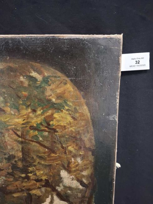 The painting is an oil on canvas, unframed, bearing a signature to the lower right corner. The canvas has been relined. The canvas appears generally in good order, no obvious tears, holes, losses. There is a minor dent to the lower right, no surface damage appears resultant. There are scuffs and surface wear around the edges and corners - please refer to the additional images. Paint surface appears generally stable and the colours well preserved