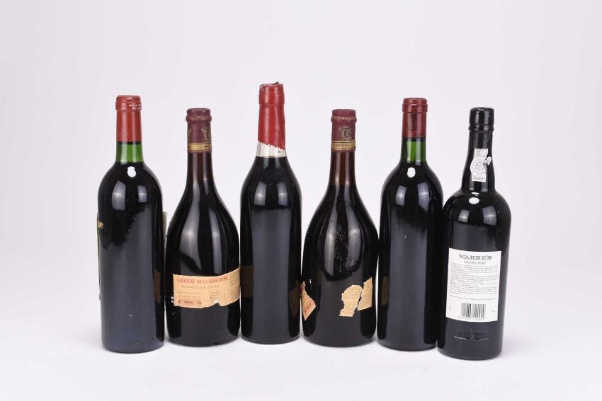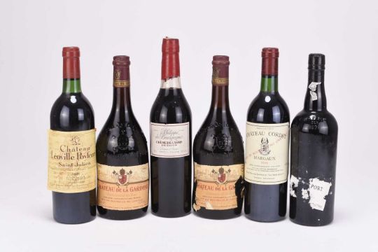 Chateau de la Gardine, Cahteauneuf-du-Pape 1984, 75cl (2); Chateau Cordet, Margaux 1989, 75cl (1); Chateau Leoville Poyferre, Saint Julien 1981, 75cl (1|; Philippe de Bourgogne, Creme de Cassis liqueur, 70cl (1) and Warre's Vintage Port 1994, 75cl (1). (6)