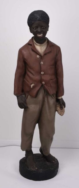 Life size polychrome plaster figure of a young black boy,