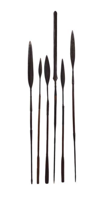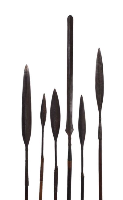 Zulu and Maasai, five with leaf-shaped heads and one with a long bladed head.
