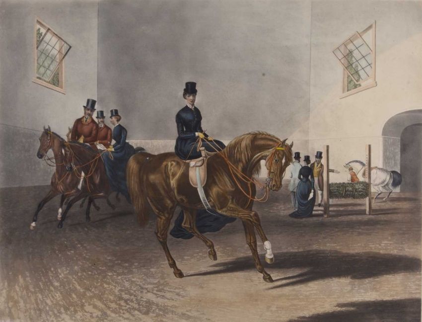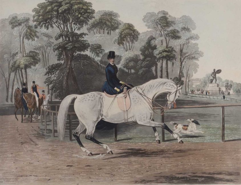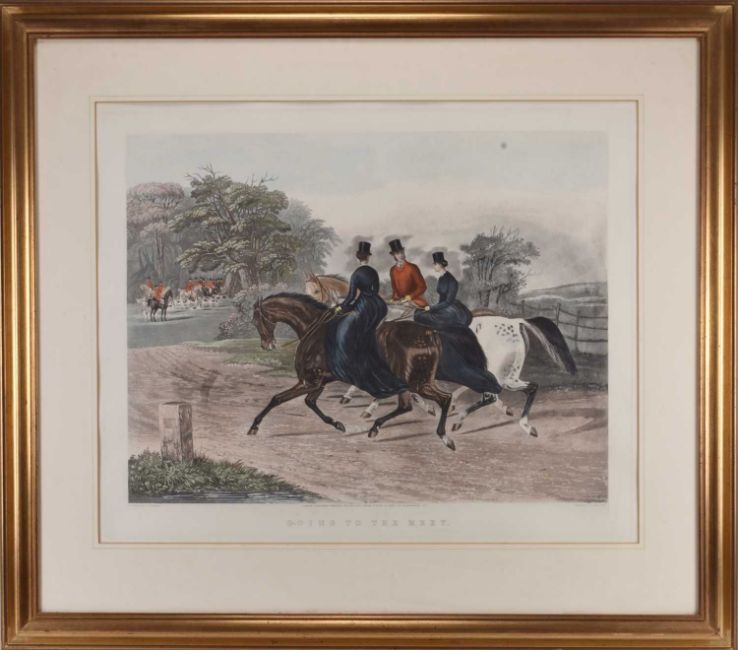 Four Charles Hunt Engravings after F.C. Turner, published by Brall & Sons, January 18 1878, titled 'Going to the Meet', 'Ladies Mile', 'The Riding School' and 'Well Done', 49 x 64 cm, frame 88 x 100 cm (4)