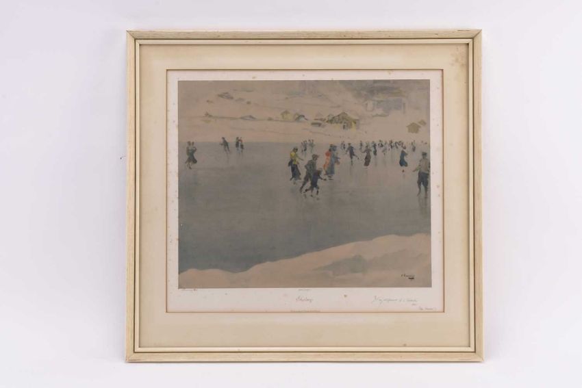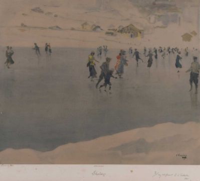 John Lavery (1856-1941) Skating, signed and inscribed in pencil lower right, print in colours, 36 x 44 cm, frame 57 x 61 cm